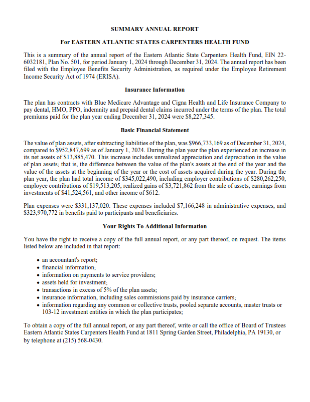 | Category | Summary Annual Report (SAR) |