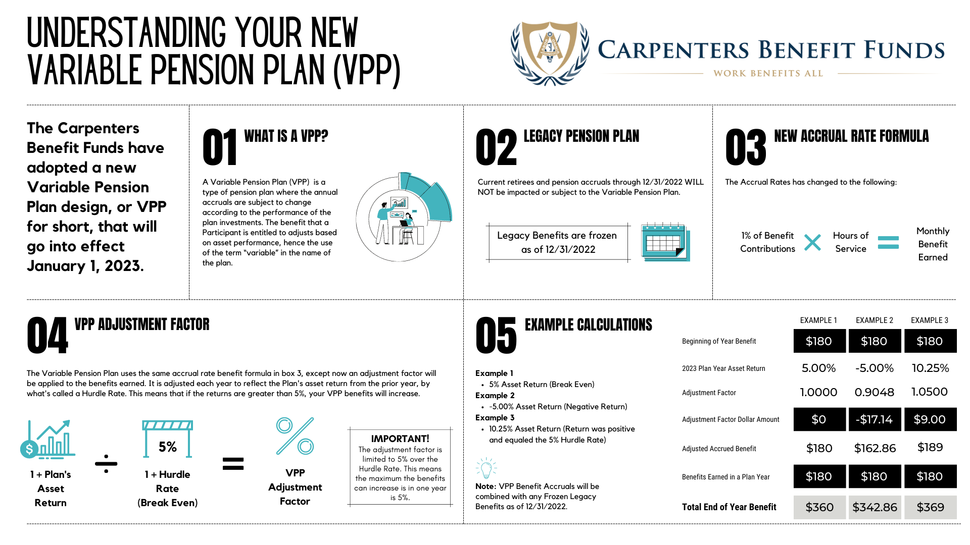 The Carpenters Benefit Funds have adopted a new Variable Pension Plan design, or VPP for short, that will go into effect January 1, 2023